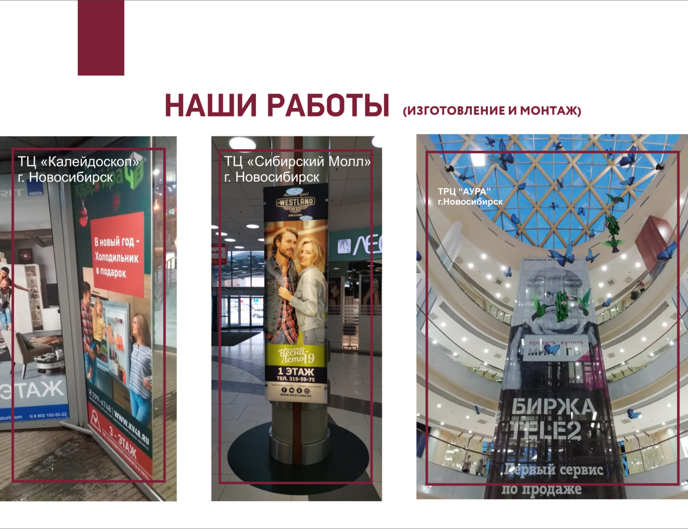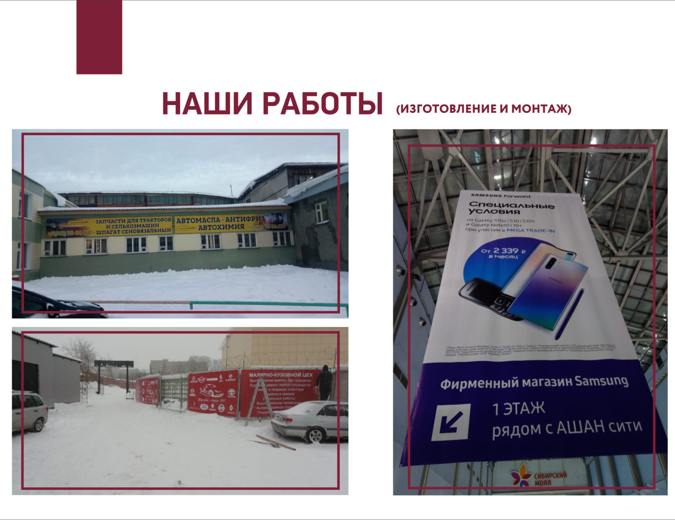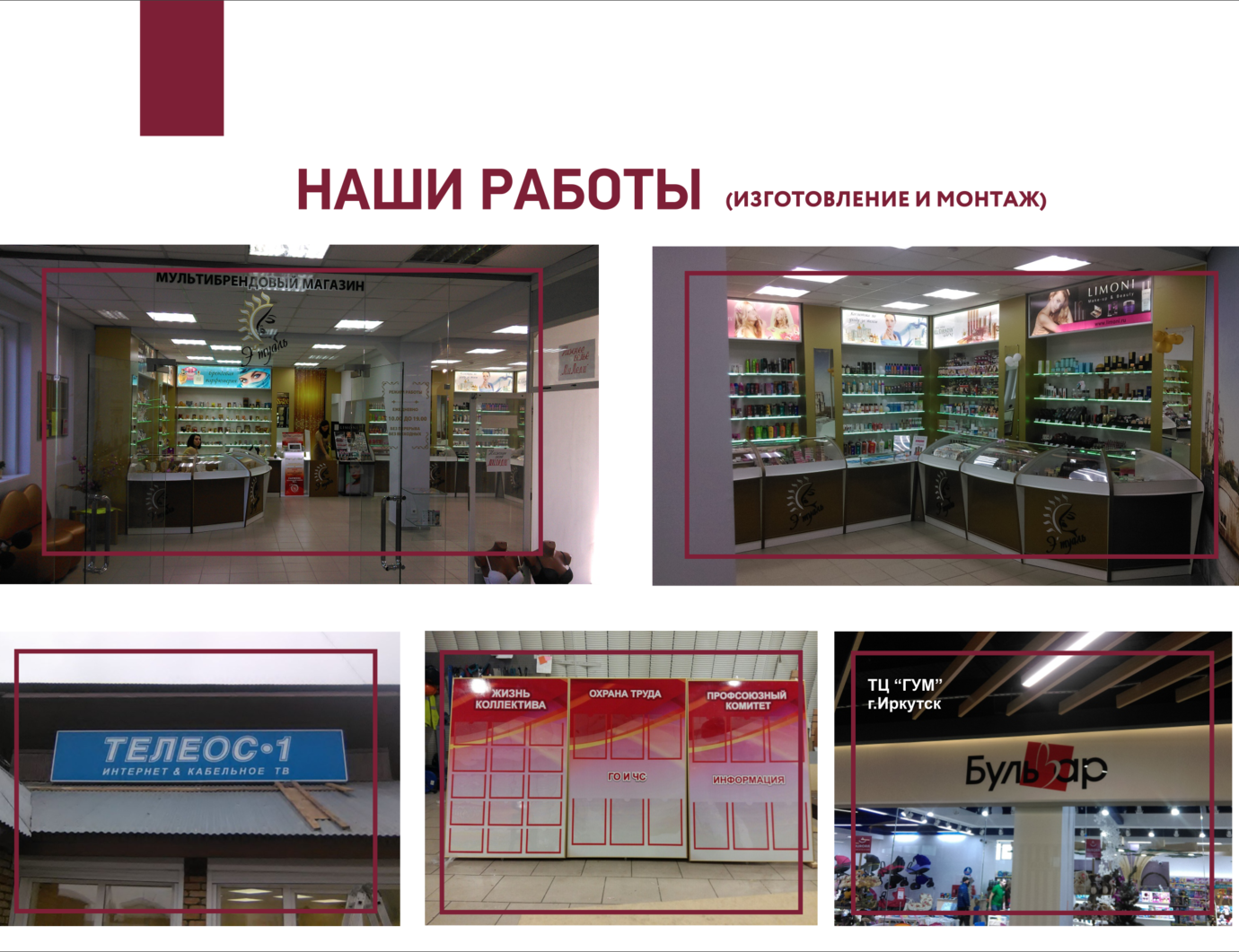 Для нас важно, чтобы дела наших рекламодателей шли хорошо, нам интересна не сиюминутная выгода, а долгосрочная совместная работа. Наша мастерская предоставляет практически весь спектр рекламных услуг и при комплексном обслуживании, заказчика ждет гибкая система скидок, возможность работы в кредит и т.д.