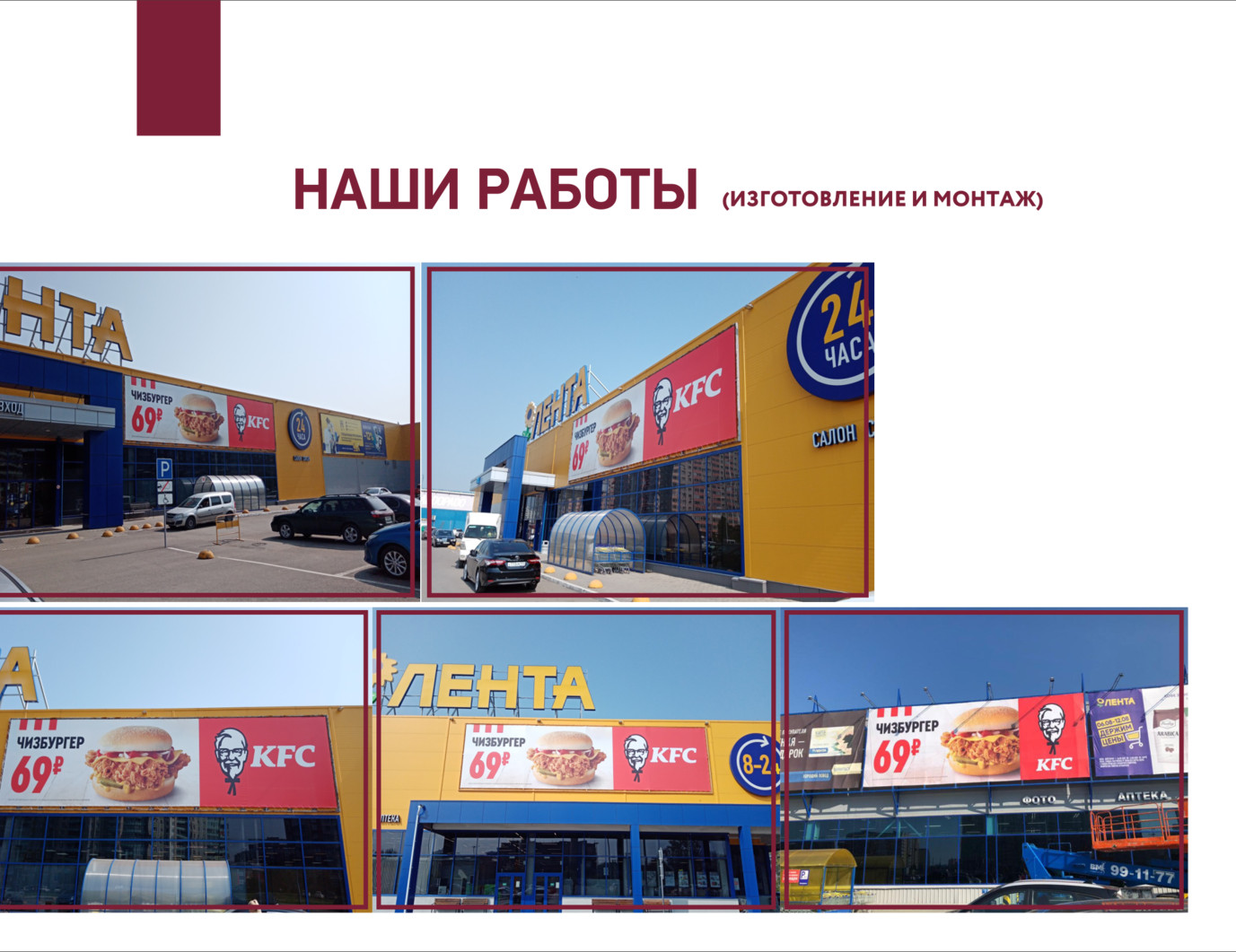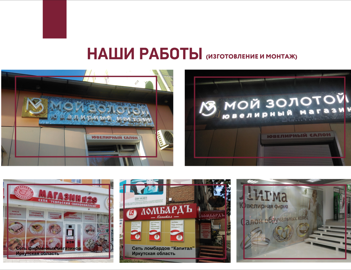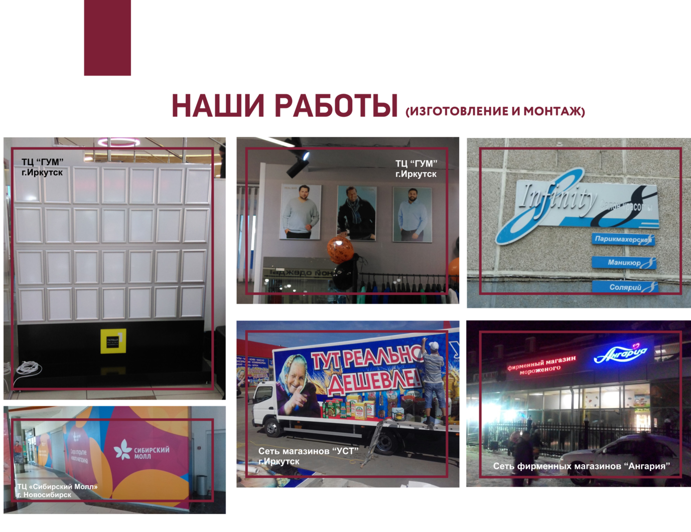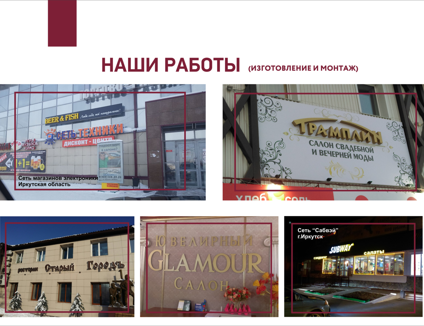 Для нас важно, чтобы дела наших рекламодателей шли хорошо, нам интересна не сиюминутная выгода, а долгосрочная совместная работа. Наша мастерская предоставляет практически весь спектр рекламных услуг и при комплексном обслуживании, заказчика ждет гибкая система скидок, возможность работы в кредит и т.д.
